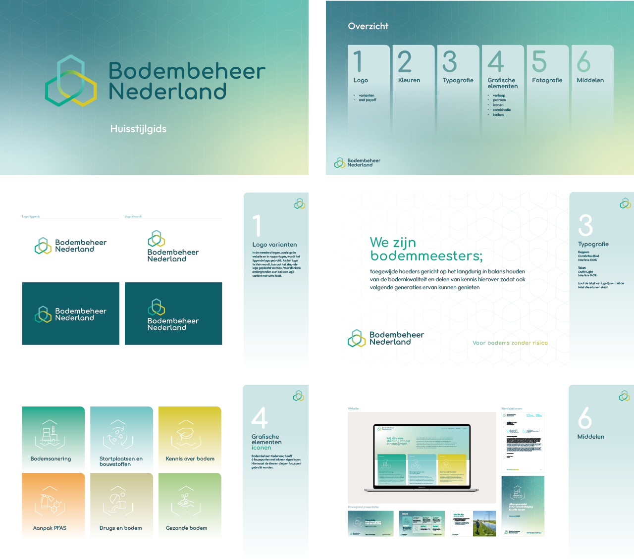 visuele identiteit, logo en huisstijl, flyers, folders en brochures, jaarverslag, website, social media, powerpoint presentatie, beurspresentatie, signing, interieur ontwerp